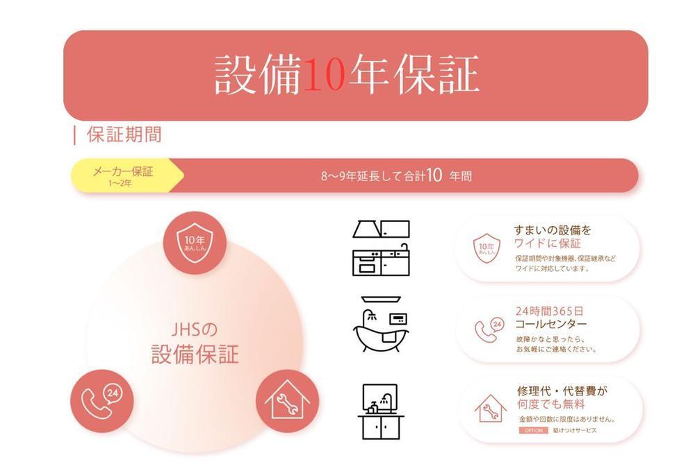 【設備10年保証】メーカー保証終了後も、キッチンやトイレなどの住宅設備機器に保証対象となる故障や不具合が発生した場合、物件引き渡しから10年間無料でメーカー保証と同等の修理サービスを受けることが可能。