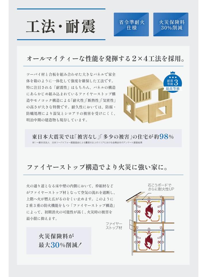 | 構造および階数 | 木造1階建(2×4工法) | 建ぺい率・容積率 | 建ペい率:50%、容積率:100% | ||