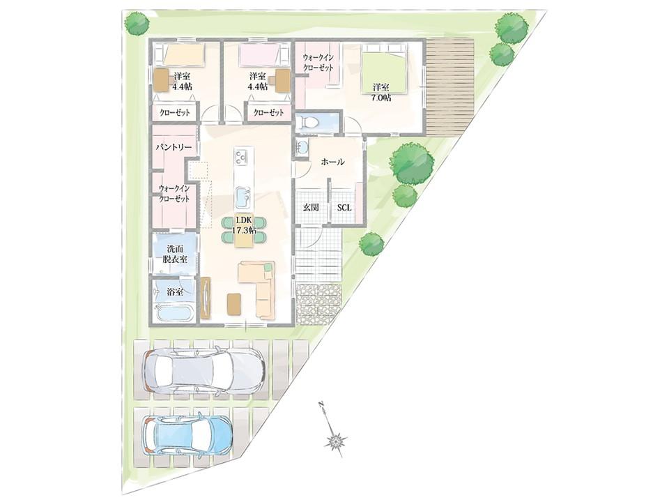 ※土地(建築条件なし)で「建物プラン例」が表記してある時、そのプラン例は特定の建築請負会社によるもので、当該建築請負会社以外で建てた場合、同様のものが同価格で建てられるとは限りません。また建築請負会社を特定するものではありません。