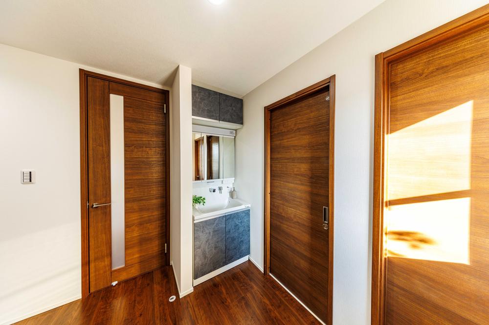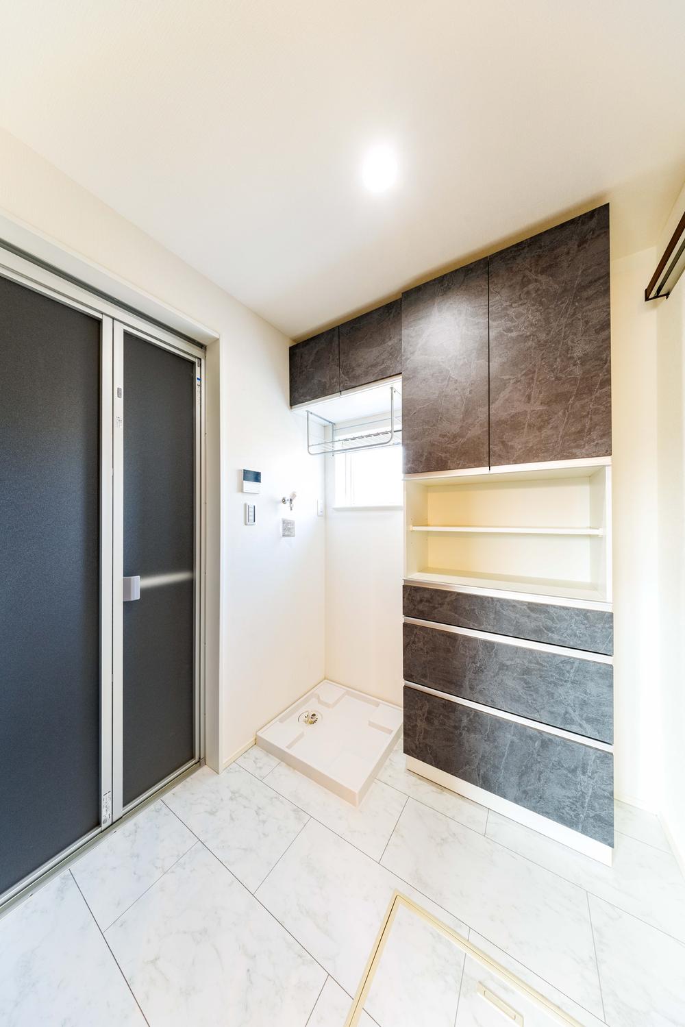 **Washroom**高級感のある広々とした洗面スペース♪便利なサニタリー収納が完備されており、タオルや下着類、日用品もスッキリ収納♪雨の日の室内干しスペースとしてもお使いいただけます!