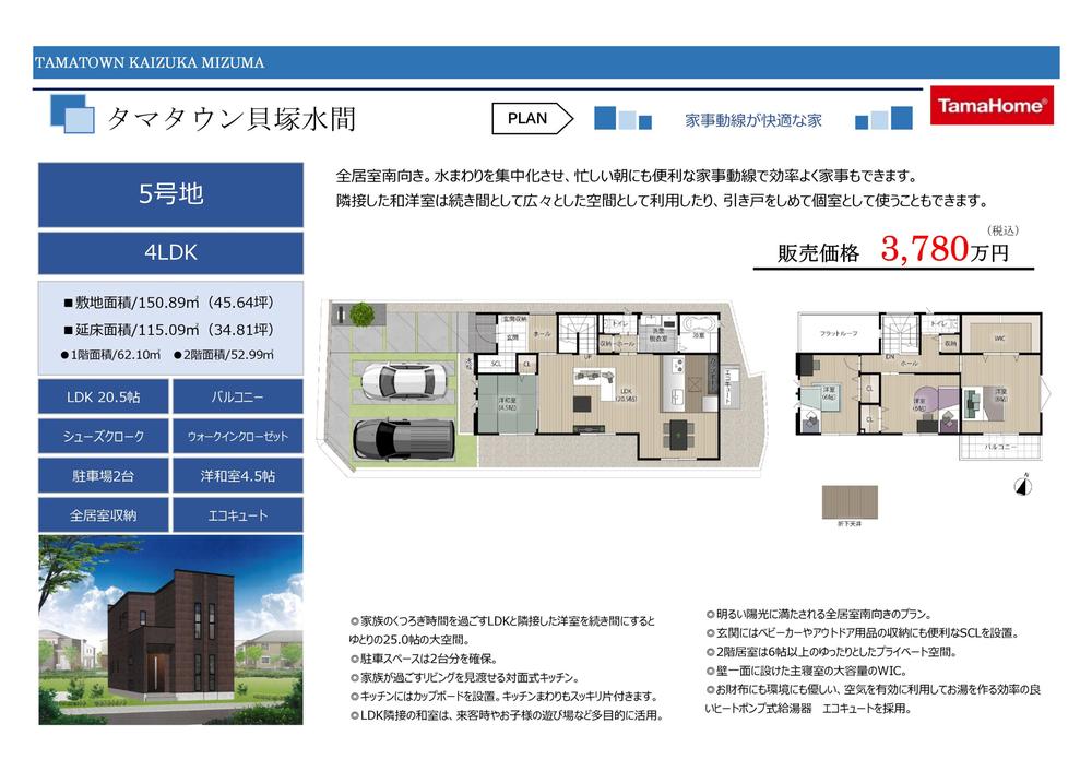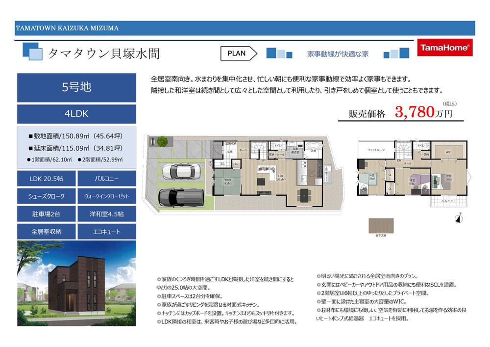 【5号地】価格3780万円LDK20.5帖 4LDK 駐車場2台土地面積150.89m2建物面積115.09m2