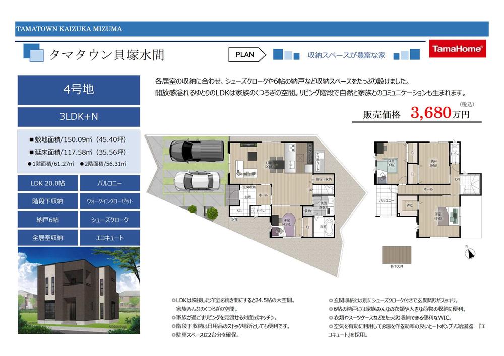 【4号地】価格3680万円LDK20.0帖 3LDK+N 駐車場2台土地面積150.09m2建物面積117.58m2