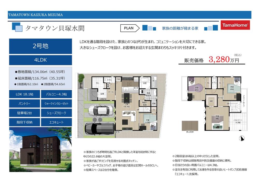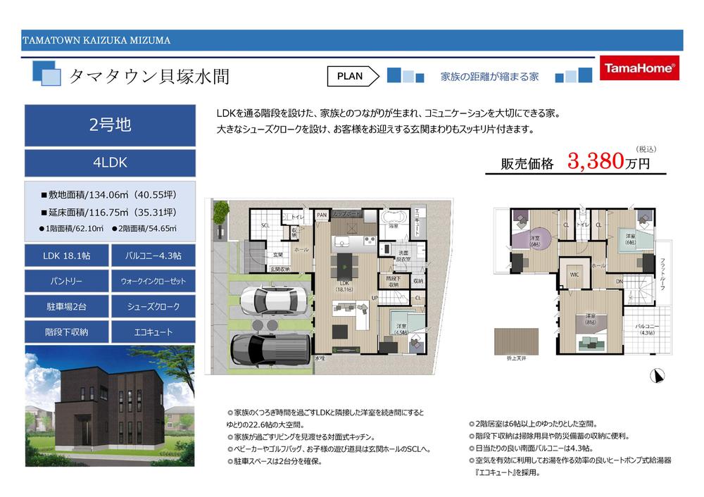 【2号地】上期決算キャンペーン2号地新価格3180万円LDK18.1帖 4LDK 駐車場2台土地面積134.06m2建物面積116.75m2