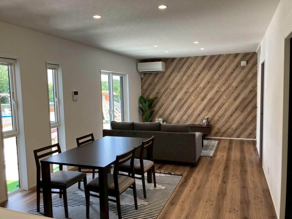 南向きのリビングでは陽射しがたっぷり入り、明るく暖かな家族団らんの一時を楽しめます。※設置されております家具家電は展示用です。販売価格には含まれておりません。※2025年8月撮影
