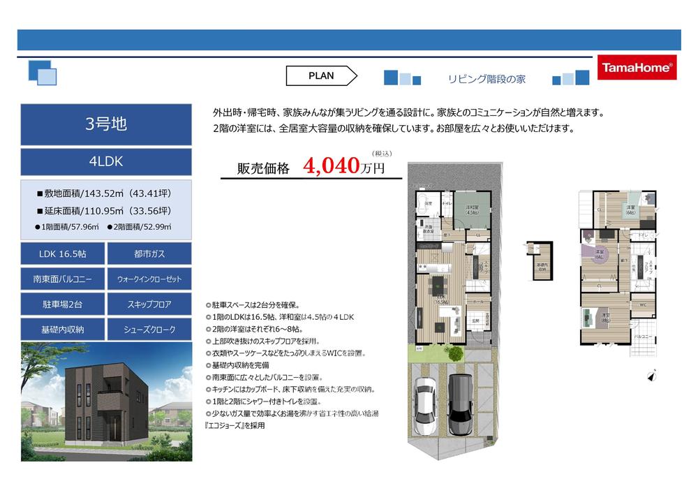 月々のローン返済額を試算新規来場特典:QUO2万円進呈!全棟4LDK駐車2台 スキップフロア付