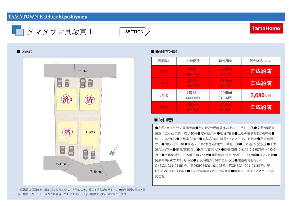 | 備考 | 景観法による規制有、法22条区域 / 設備:公営水道、本下水、都市ガス、関西電力、建築確認番号:第OKBC01-01151号他 | ||||