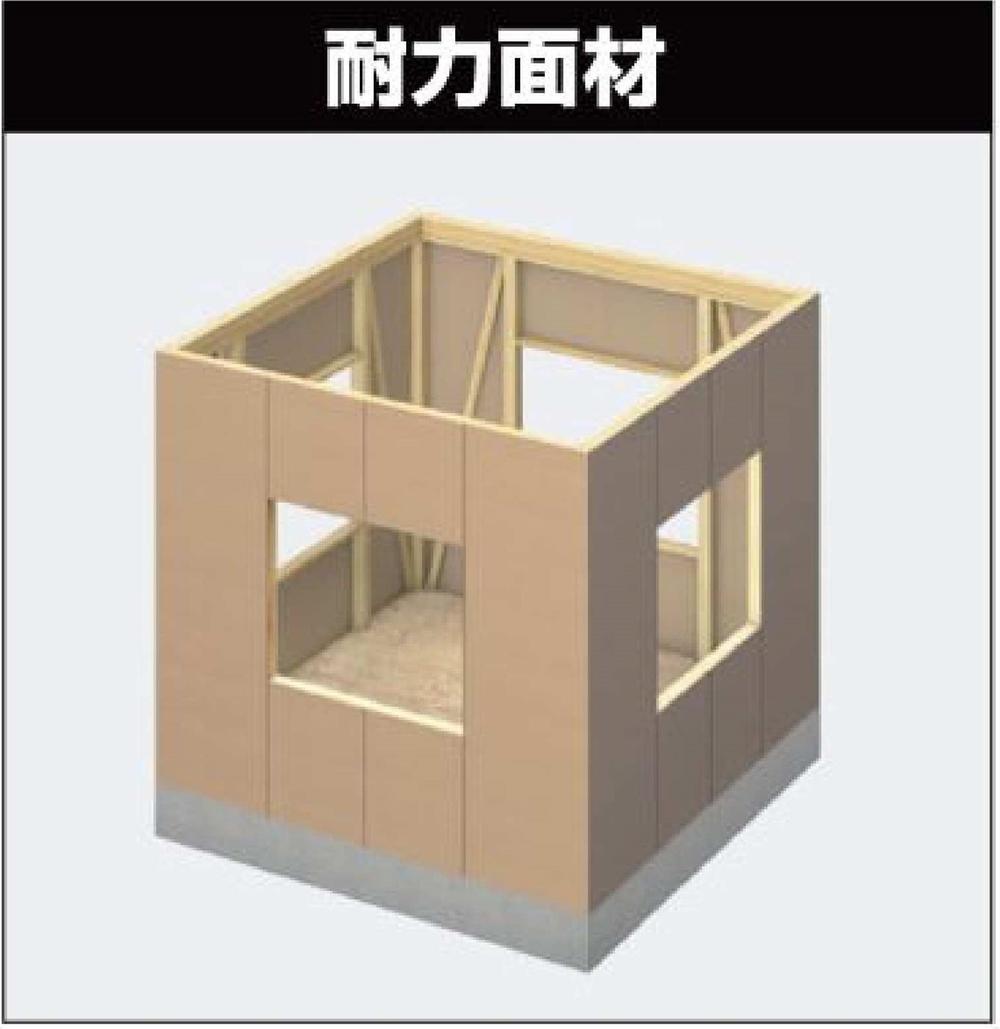 筋交をバランスよく配置し、接合性能と強度の高い構造用耐力面材を土台や柱、梁へ直接張ることにより、地震や暴風に対する強度がアップする「耐力面材」。外部からの力を建物全体へ分散させ、高い耐震性を確保します。