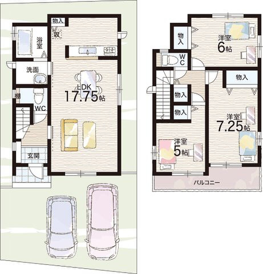 | 建物面積 | 84.46m2~87.77m2 | 土地面積 | 100.30m2~105.57m2 | ||