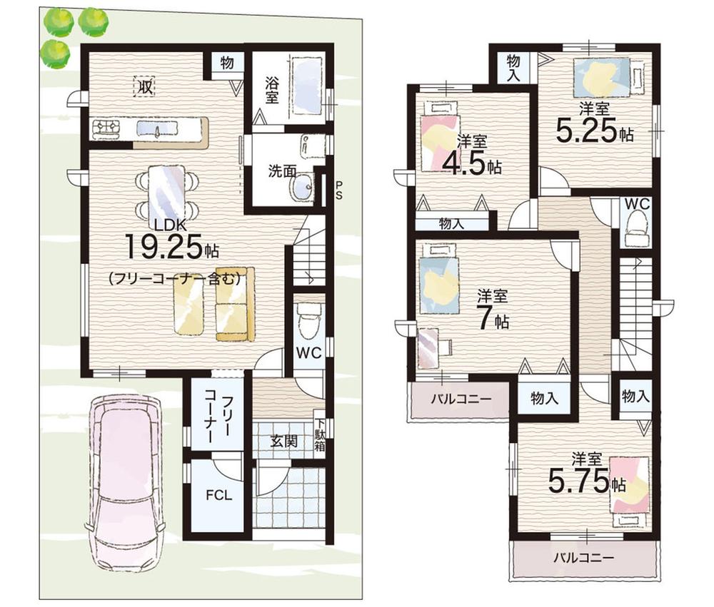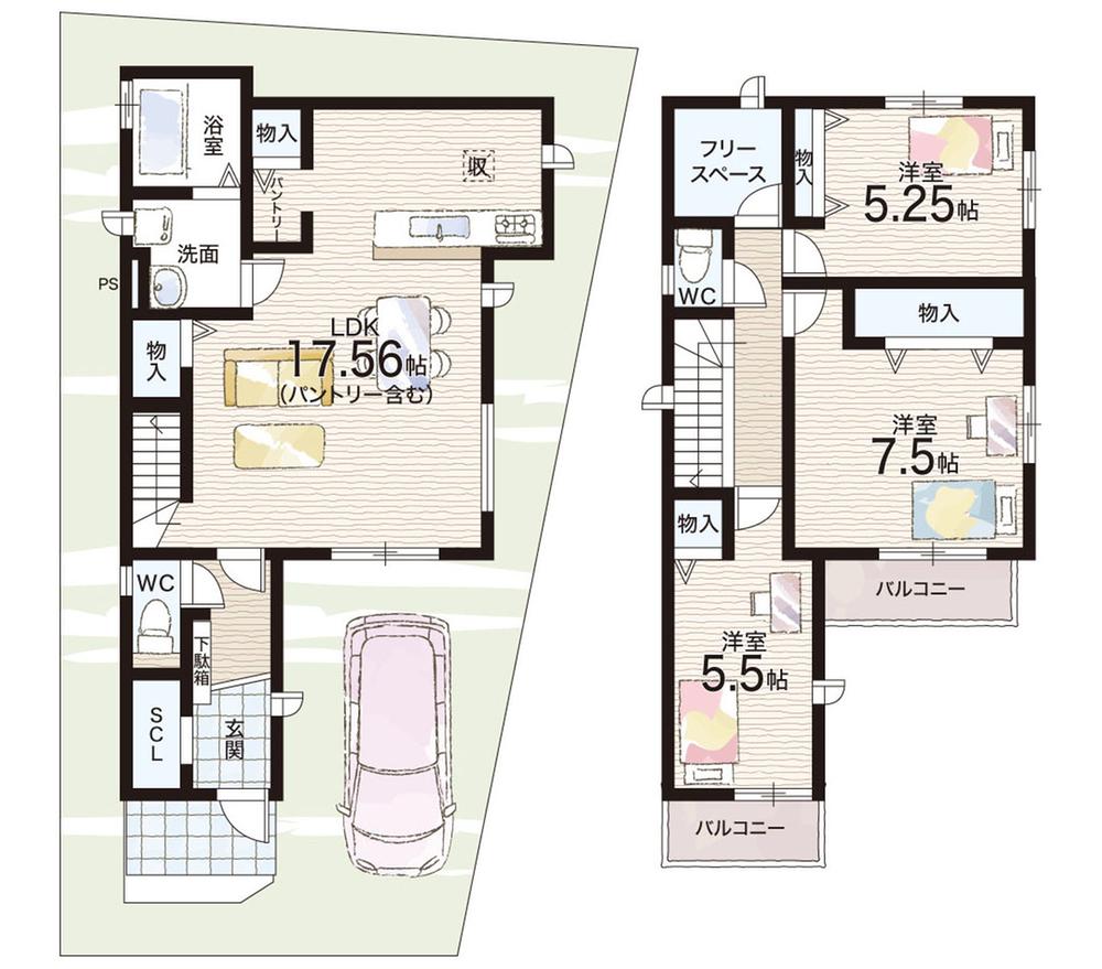 ※土地(建築条件なし)で「建物プラン例」が表記してある時、そのプラン例は特定の建築請負会社によるもので、当該建築請負会社以外で建てた場合、同様のものが同価格で建てられるとは限りません。また建築請負会社を特定するものではありません。