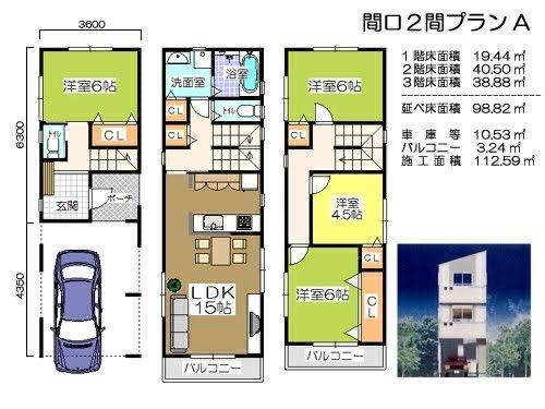 | 建物面積 | 98.82㎡ | 土地面積 | 66.77㎡ | ||
