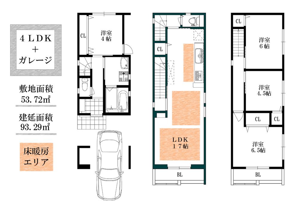 | 建物面積 | 93.29㎡ | 土地面積 | 53.72㎡(登記) | ||