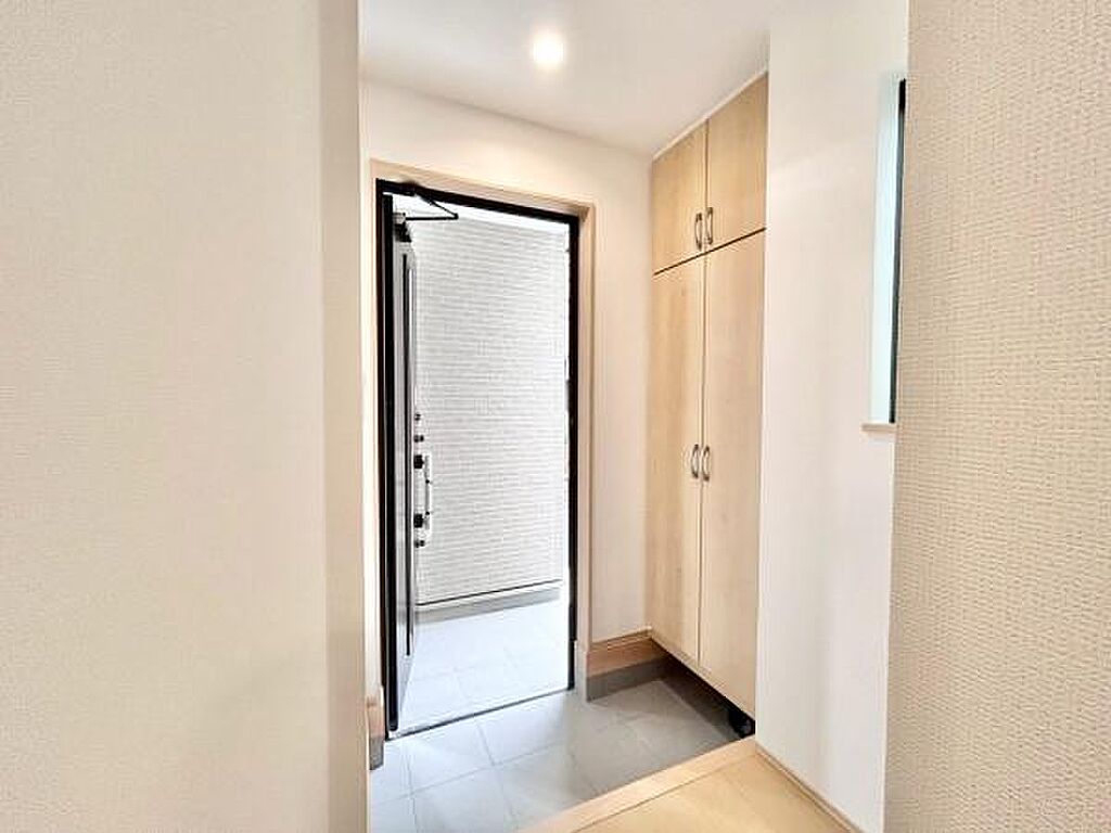 玄関も明るいです。大きな下駄箱もあり収納力・清潔感がGOODです。
