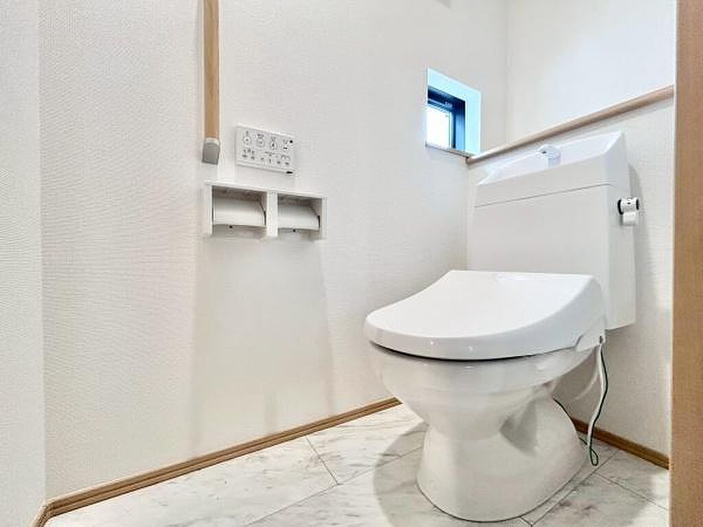 節水型でエコなトイレには、今では当たり前のウォシュレット付き。便座を温める機能付き!1階2階どちらにもトイレがあるって本当に便利ですね。