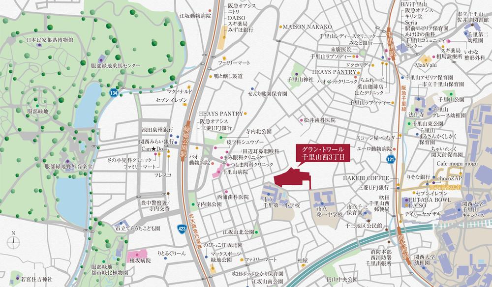 北大阪急行「緑地公園」歩7分~9分 阪急千里線「関大前」歩7分~9分 阪急千里線「千里山」歩11分~13分 | ||||