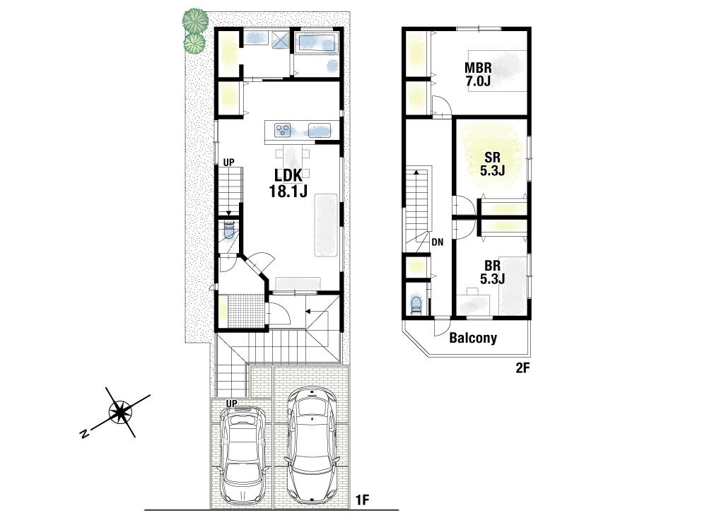 | 建物面積 | 93.56㎡・97.7㎡(28.30坪・29.55坪)(登記) | 土地面積 | 101.36㎡~114.51㎡(30.66坪~34.63坪)(登記) | ||
