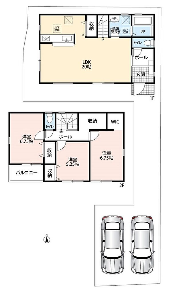 | 建物面積 | 95.63m2・101.44m2 | 土地面積 | 106.41m2・134.83m2 | ||