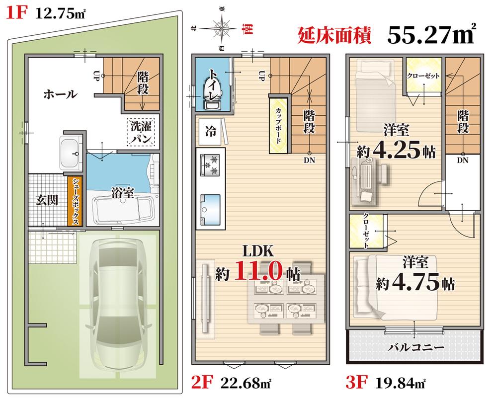 | 建物面積 | 55.27㎡(16.71坪)(実測) | 土地面積 | 47.26㎡(14.29坪)(登記) | ||