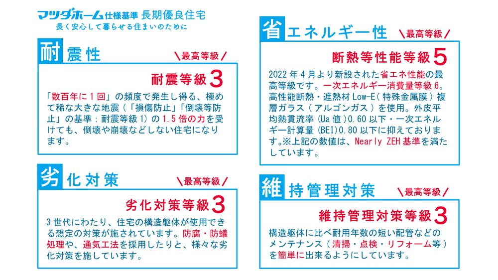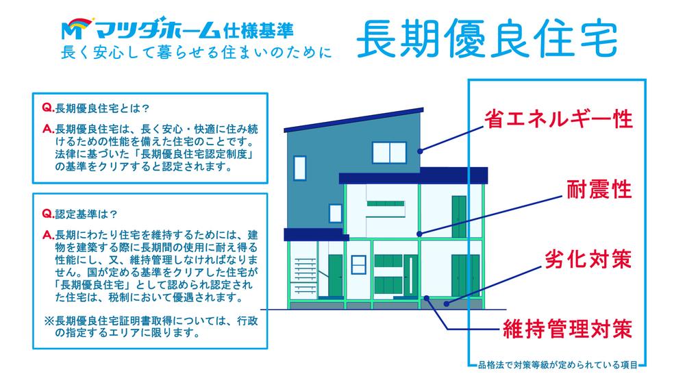 税制においての優遇や金利優遇等、さまざまなメリットがある「長期優良住宅」。マツダホームでは、標準仕様で長期優良住宅の認定を受けられます。長く住み続けられるための性能を備えた住まいをご提供致します。