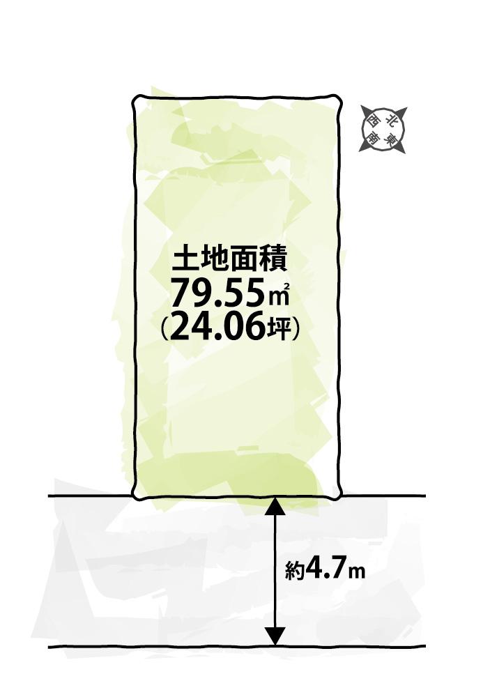 | 地目 | - | 道路付け | 無、南東4.7m幅(接道幅6.3m) | ||