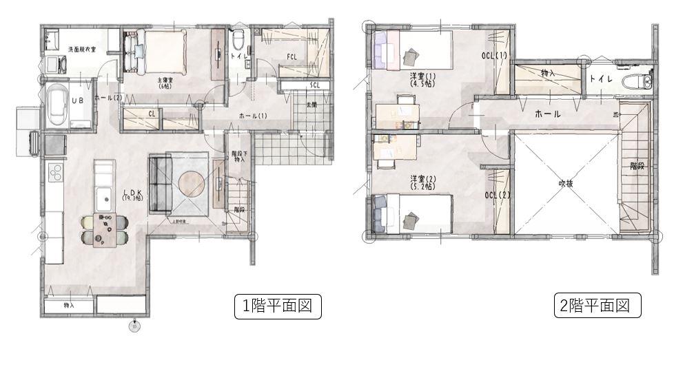 ※土地(建築条件なし)で「建物プラン例」が表記してある時、そのプラン例は特定の建築請負会社によるもので、当該建築請負会社以外で建てた場合、同様のものが同価格で建てられるとは限りません。また建築請負会社を特定するものではありません。