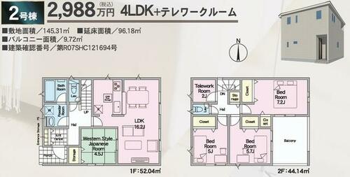 | 建物面積 | 96.18㎡ | 土地面積 | 145.31㎡ | ||