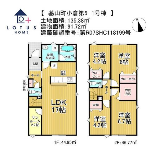 | 建物面積 | 91.72㎡ | 土地面積 | 135.38㎡ | ||