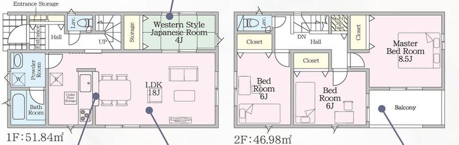 ※土地(建築条件なし)で「建物プラン例」が表記してある時、そのプラン例は特定の建築請負会社によるもので、当該建築請負会社以外で建てた場合、同様のものが同価格で建てられるとは限りません。また建築請負会社を特定するものではありません。