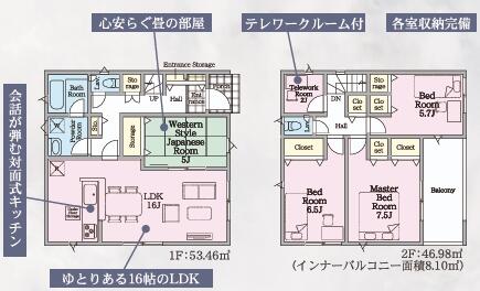 | 設備 | 収納スペース・浴室乾燥機・シャンプードレッサー・ウォシュレット・システムキッチン・カウンターキッチン・モニタ付インターホン・クロゼット・トイレ2ヶ所・床下収納・ルーフバルコニー・IHクッキングヒータ・浄水器・複層ガラス・電気・上水道・下水道 | ||||