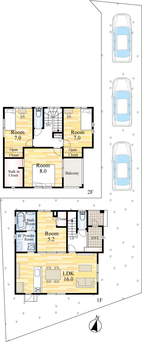 ※土地(建築条件なし)で「建物プラン例」が表記してある時、そのプラン例は特定の建築請負会社によるもので、当該建築請負会社以外で建てた場合、同様のものが同価格で建てられるとは限りません。また建築請負会社を特定するものではありません。