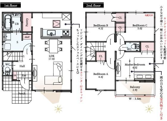 ※土地(建築条件なし)で「建物プラン例」が表記してある時、そのプラン例は特定の建築請負会社によるもので、当該建築請負会社以外で建てた場合、同様のものが同価格で建てられるとは限りません。また建築請負会社を特定するものではありません。