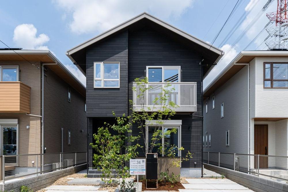 34号地は、モノトーンでまとめられたスタイリッシュな雰囲気が魅力的な外観です。駐車は最大2台可能です。(車種による)