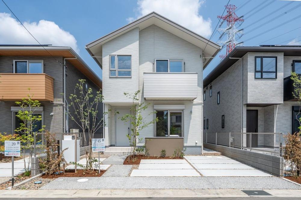 45号地は、白で統一された爽やかな印象が魅力的な外観です。駐車は最大2台可能です。(車種による)