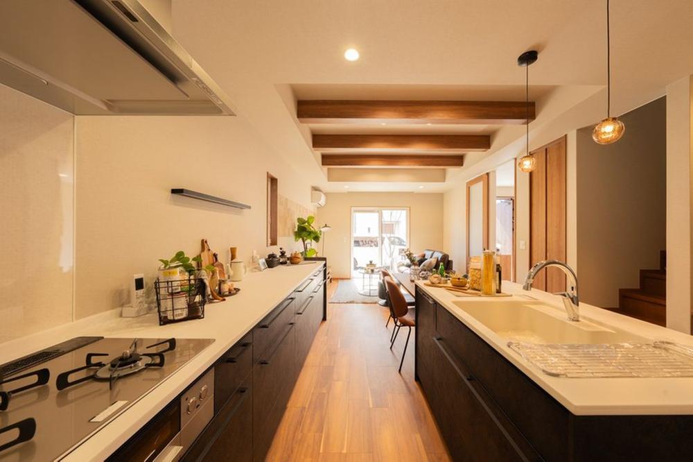 ■19号地キッチン19号地はセパレートキッチンとなっており、回遊性のある動線で調理や片付けがスムーズに行えます。家族みんなが自然とお手伝いできる間取りです。