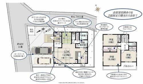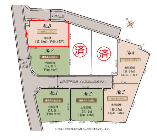 | 私道負担・道路 | - | 道路付け | 北 4.7m 公道西 4.0m 公道 | ||