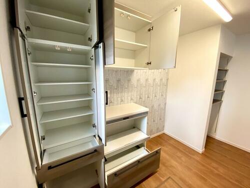 | 設備 | 給湯・バルコニー・収納スペース・追焚機能・都市ガス・フローリング・浴室乾燥機・Wクロゼット・シャンプードレッサー・ウォシュレット・システムキッチン・カウンターキッチン・モニタ付インターホン・クロゼット・トイレ2ヶ所・床下収納・浄水器・食器洗浄乾燥機・複層ガラス・ディンプルキー・電気・上水道・下水道・省エネ給湯器 | ||||