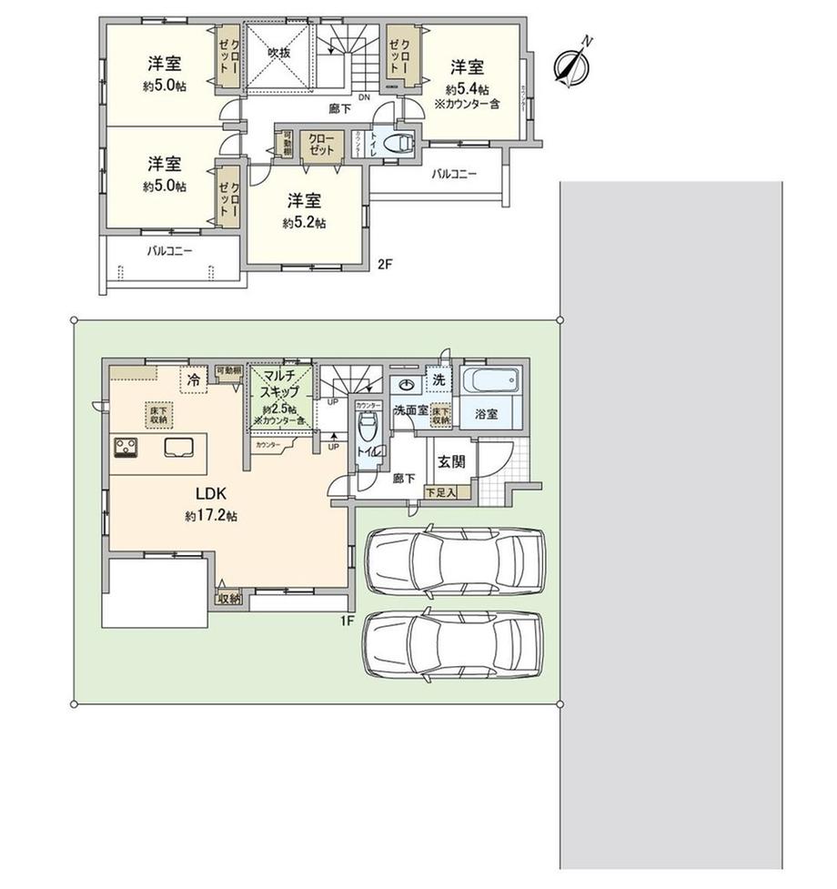 ※土地(建築条件なし)で「建物プラン例」が表記してある時、そのプラン例は特定の建築請負会社によるもので、当該建築請負会社以外で建てた場合、同様のものが同価格で建てられるとは限りません。また建築請負会社を特定するものではありません。