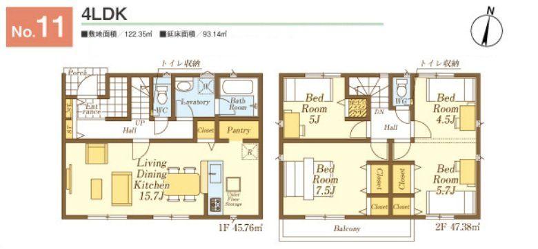 | 建物面積 | 93.14㎡(28.17坪)(実測) | 土地面積 | 122.35㎡(37.01坪)(実測) | ||
