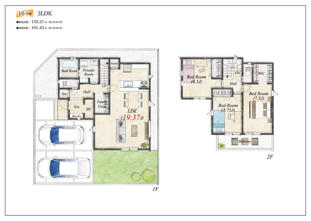 | 建物面積 | 96.47㎡~101.43㎡ | 土地面積 | 135.21㎡ | ||