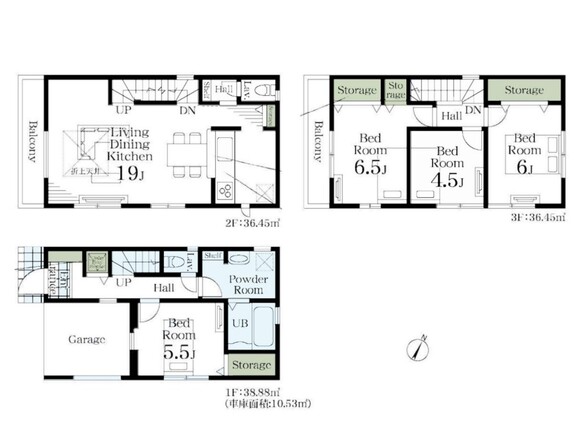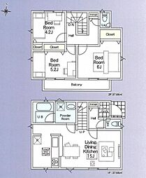 土地面積土地:116.18m2〜122.96m2 建物:103.4m2〜108.06m2