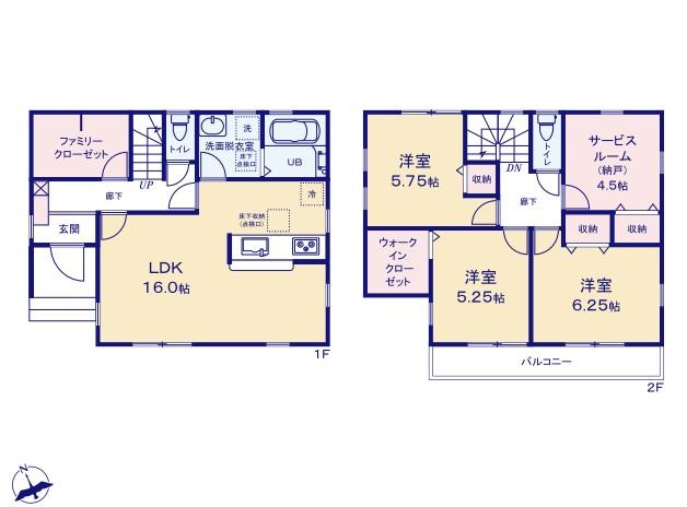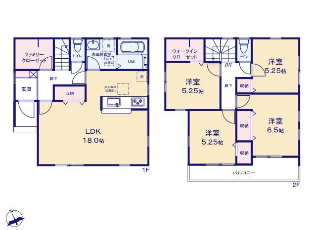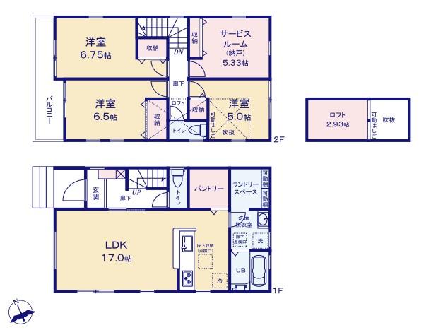 | 建物面積 | 94.77㎡~99.83㎡ | 土地面積 | 102.99㎡~133.43㎡ | ||