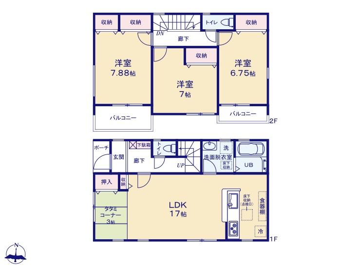 ※土地(建築条件なし)で「建物プラン例」が表記してある時、そのプラン例は特定の建築請負会社によるもので、当該建築請負会社以外で建てた場合、同様のものが同価格で建てられるとは限りません。また建築請負会社を特定するものではありません。