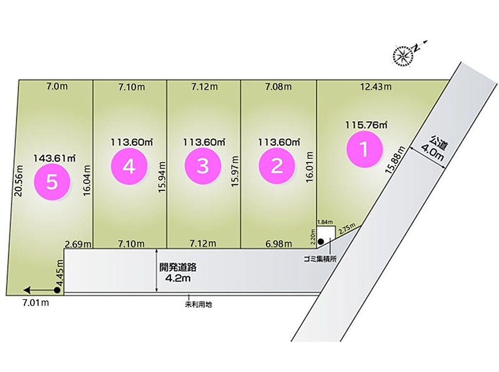| 道路付け | 南東側:4.2m公道、北東側:4.0m公道 | 機構融資 | - | ||