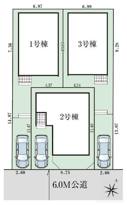 建物面積 | 90.67㎡~104.12㎡(27.42坪~31.49坪) | 土地面積 | 100.28㎡~105.63㎡(30.33坪~31.95坪) | ||