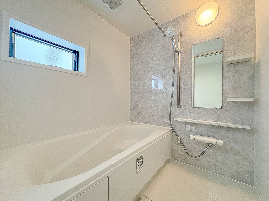 1号棟【浴室】きっとあなたのバスタイムも単なる習慣から特別な時間に変わるはず。一日の汚れとともに疲れを洗い流し、眠りに就く前の大事なリラックスタイムを演出