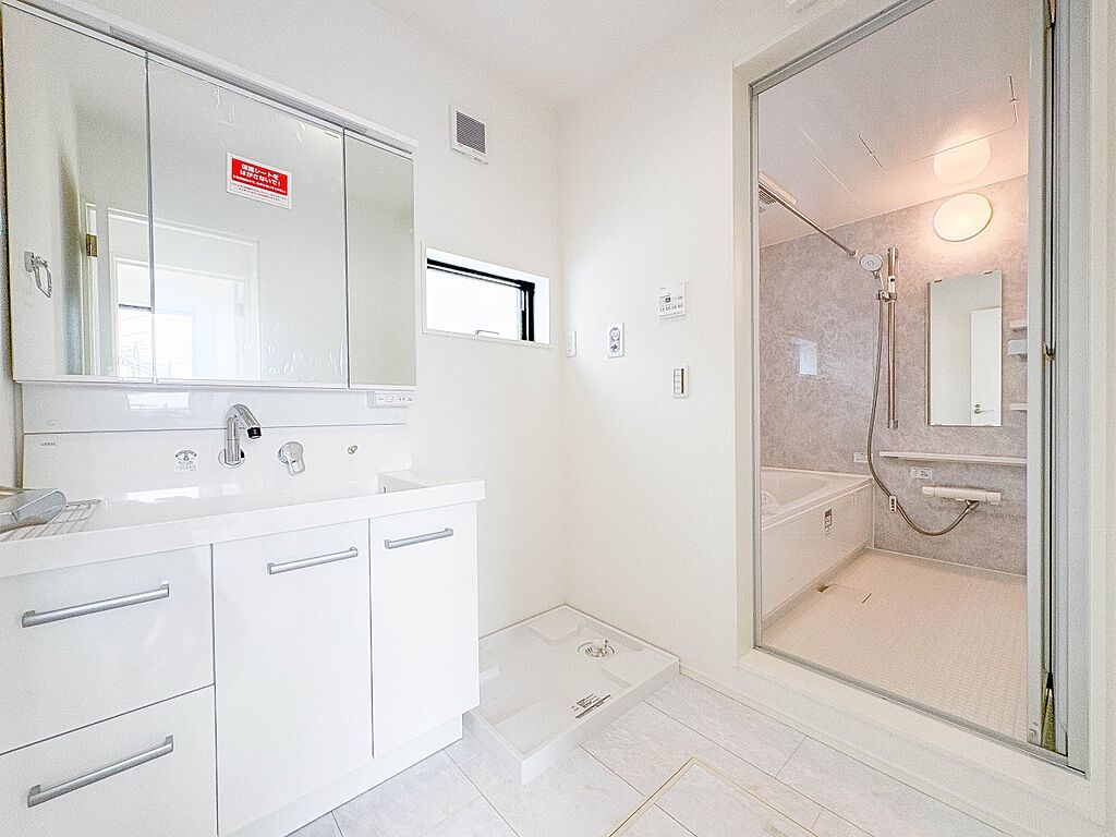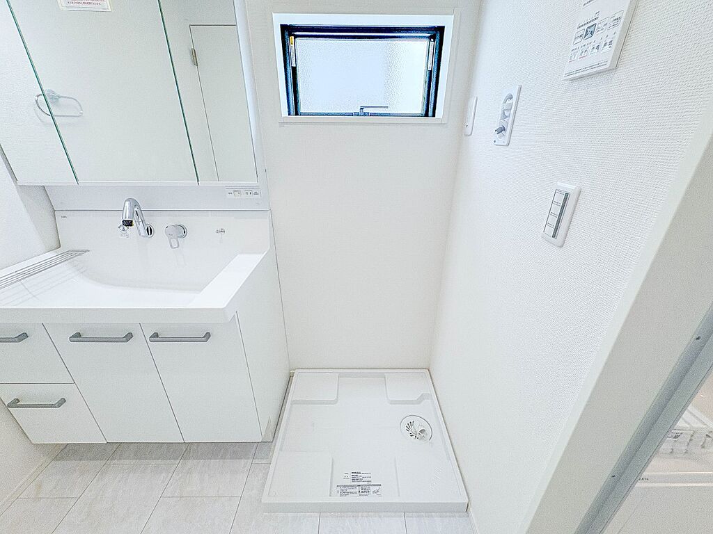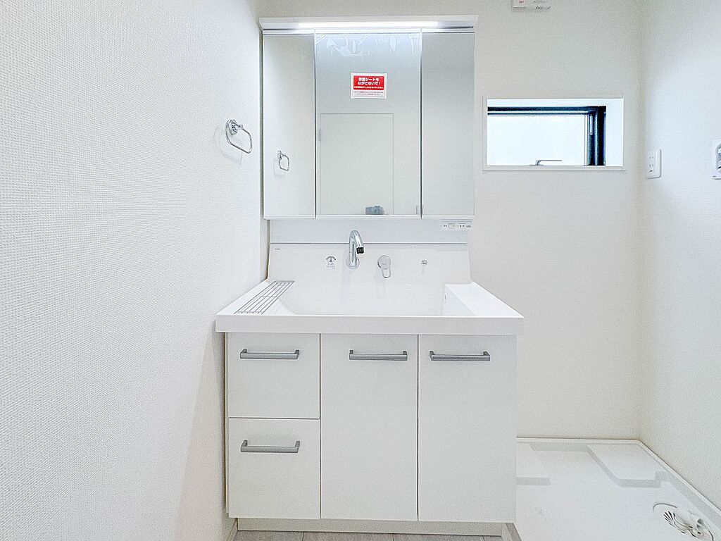 1号棟【洗面台】十分な大きさの洗面台は、身だしなみチェックや歯磨きなど、朝の慌ただしい時間でもホテルライクなスペースで余裕とゆとりを感じて頂けます。