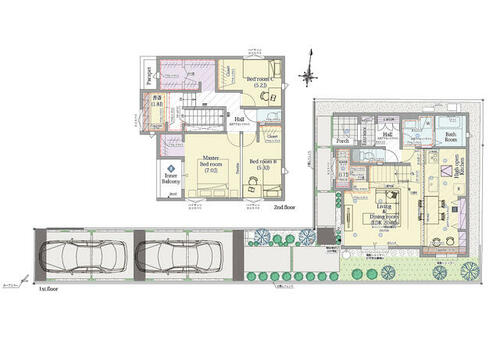 | 備考 | ■総戸数/2戸 ■販売戸数/2戸 ■販売価格(税込)/7280万円・7480万円 ■土地面積/110.09m2~139.5m2 ■建物面積/100.81m2~104.02m2 ■間取り/3LDK ~ 4LDK ■道路西側6m公道 ■完成予定/2026年6月下旬予定 ■入居予定/2026年8月上旬 ■建築確認番号/第SJK-KX255645930号(1号棟)他 ■売主名/ポラスマイホームプラザ(株)(免許番号:宅建業:埼玉県知事(12)第8059号)・私道負担:なし・【ポラスの分譲】●ZEHを超える省エネ性能「GXgrade」太陽光発電システム標準搭載●敷地面積110㎡超、全棟カースペース2台●前面道路6.0m 開放的な街並み●建物面積100㎡超 | ||||
