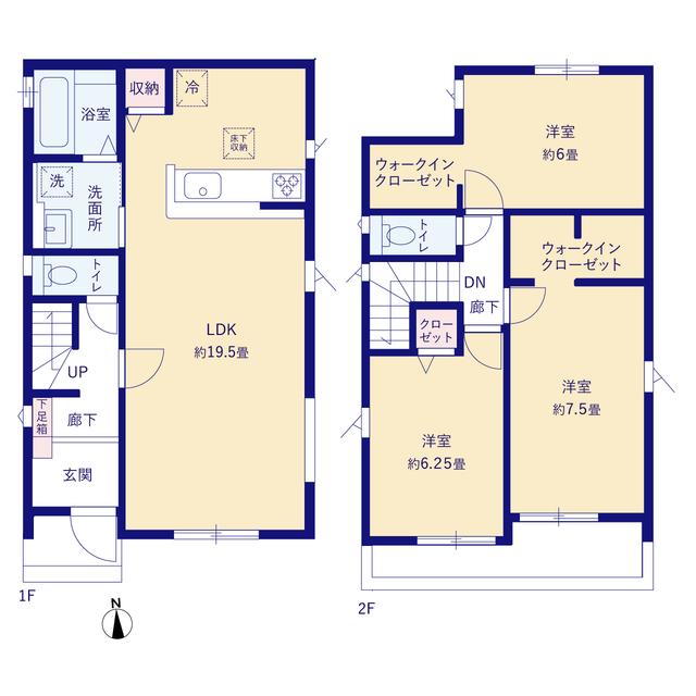 | 建物面積 | 95.63㎡・96.05㎡(28.92坪・29.05坪) | 土地面積 | 128.51㎡・157.16㎡(38.87坪・47.54坪) | ||