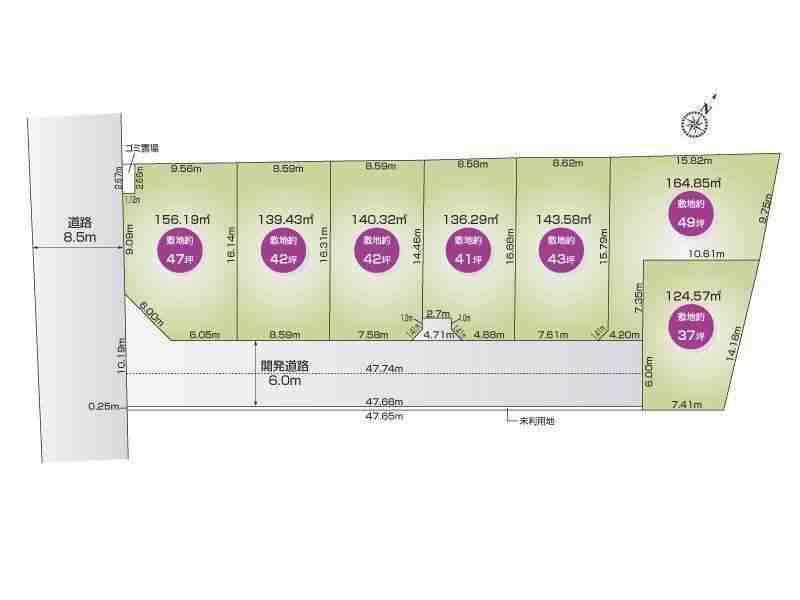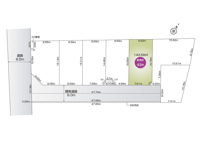 | その他制限事項 | 景観法による規制有、宅地造成工事規制区域、隅切り有、※未利用地12.00㎡持分1/7有(土地面積に含めない) ※転回道路4.71㎡持分1/5有(土地面積に含めない) | ||||
