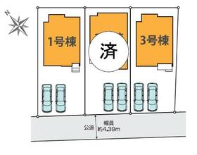 土地面積土地:153.53m2〜158.45m2(46.44坪〜47.93坪)(実測) 建物:104.94m2〜105.54m2(31.74坪〜31.92坪)(実測)