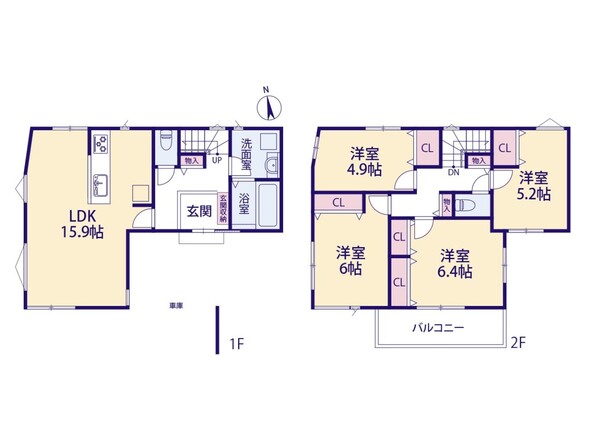 土地面積土地:150.02m2(1号棟)〜153.80m2(5号棟) 建物:104.33m2(6号棟)〜114.26m2(1〜4号棟)